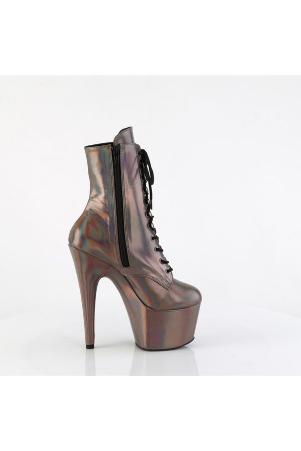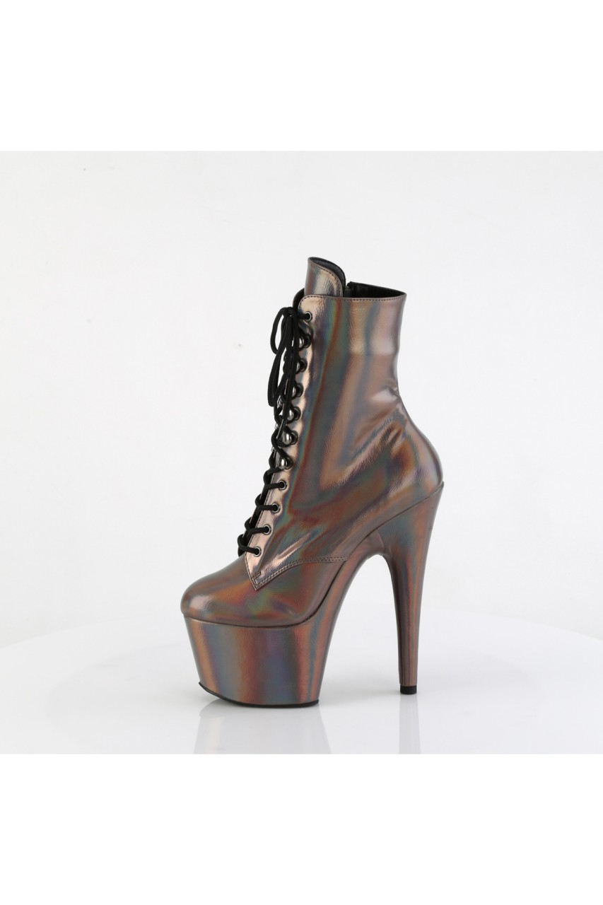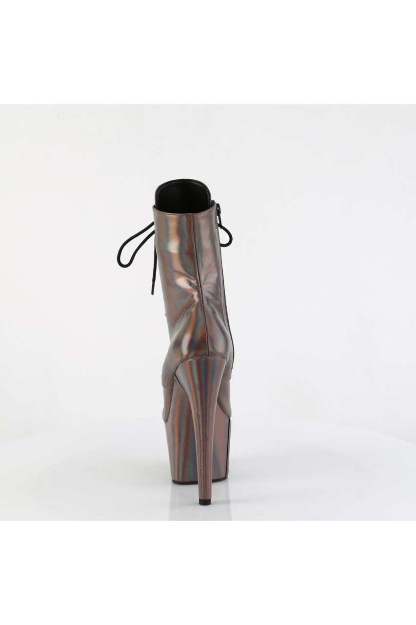 7″” (178mm) Heel, 2 3/4″” (70mm) Platform Lace-Up Front Ankle Boot With Fully Wrapped Platform Bottom, Inner Side Zip Closure