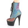 7″” (178mm) Heel, 2 3/4″” (70mm) Platform Lace-Up Front Ankle Boot w/Rainbow Reflective Effect Upper, Inner Side Zip Closure