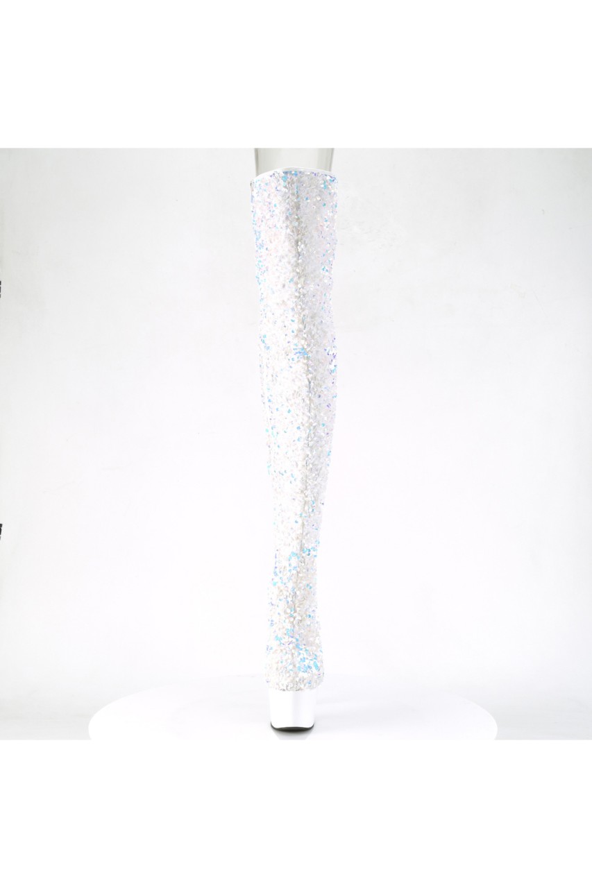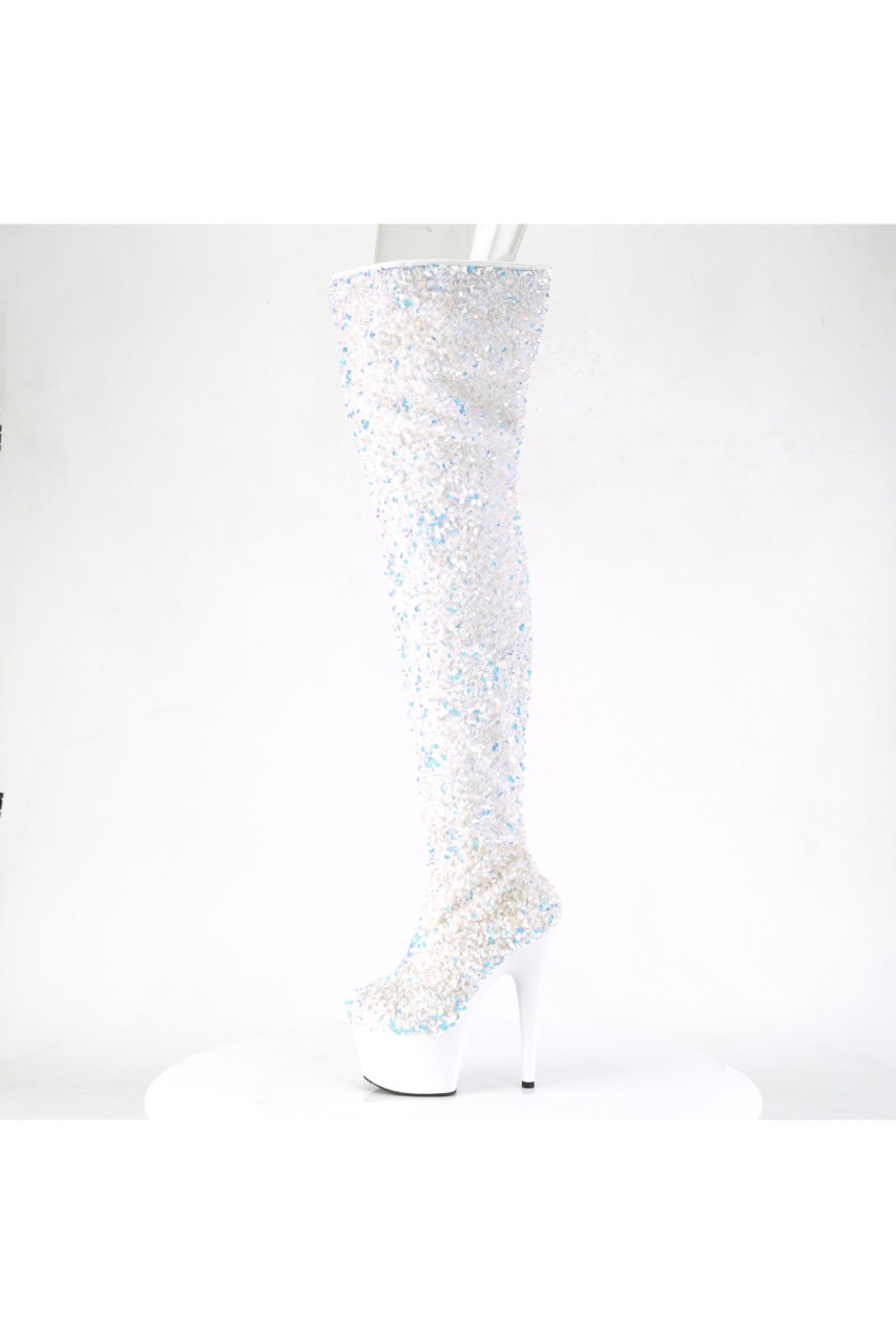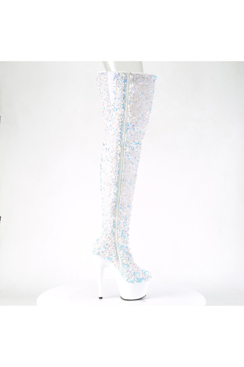 7″” (178mm) Heel, 2 3/4″” (70mm) Platform Stretch Sequin Thigh High Boot Featuring Multi Sequined Body, Inner Side Zip Closure