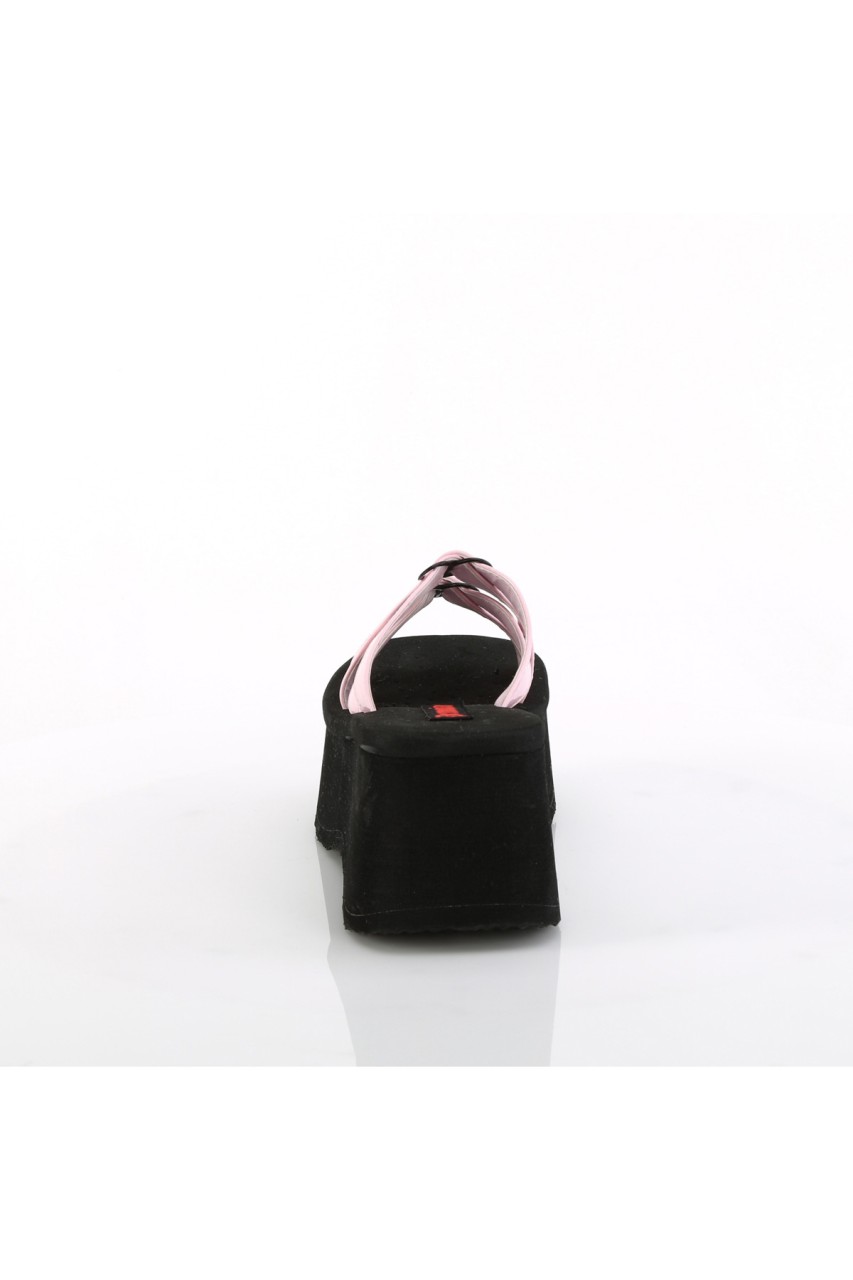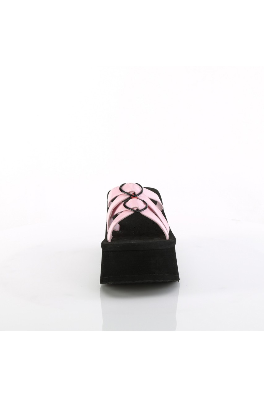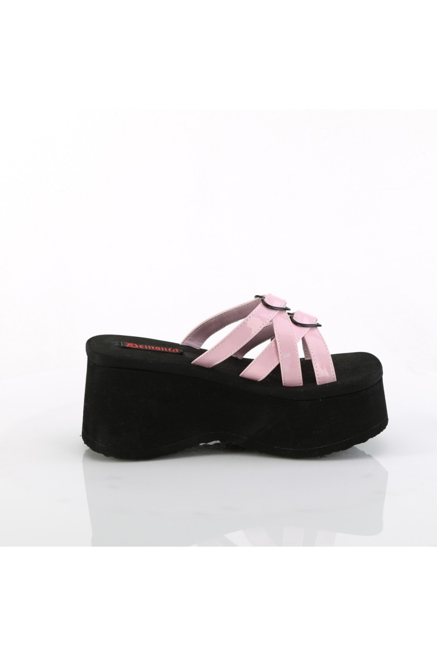 3 1/2″” (89mm) Platform Criss Cross Slide Sandal w/ Heart Ring Center Detail