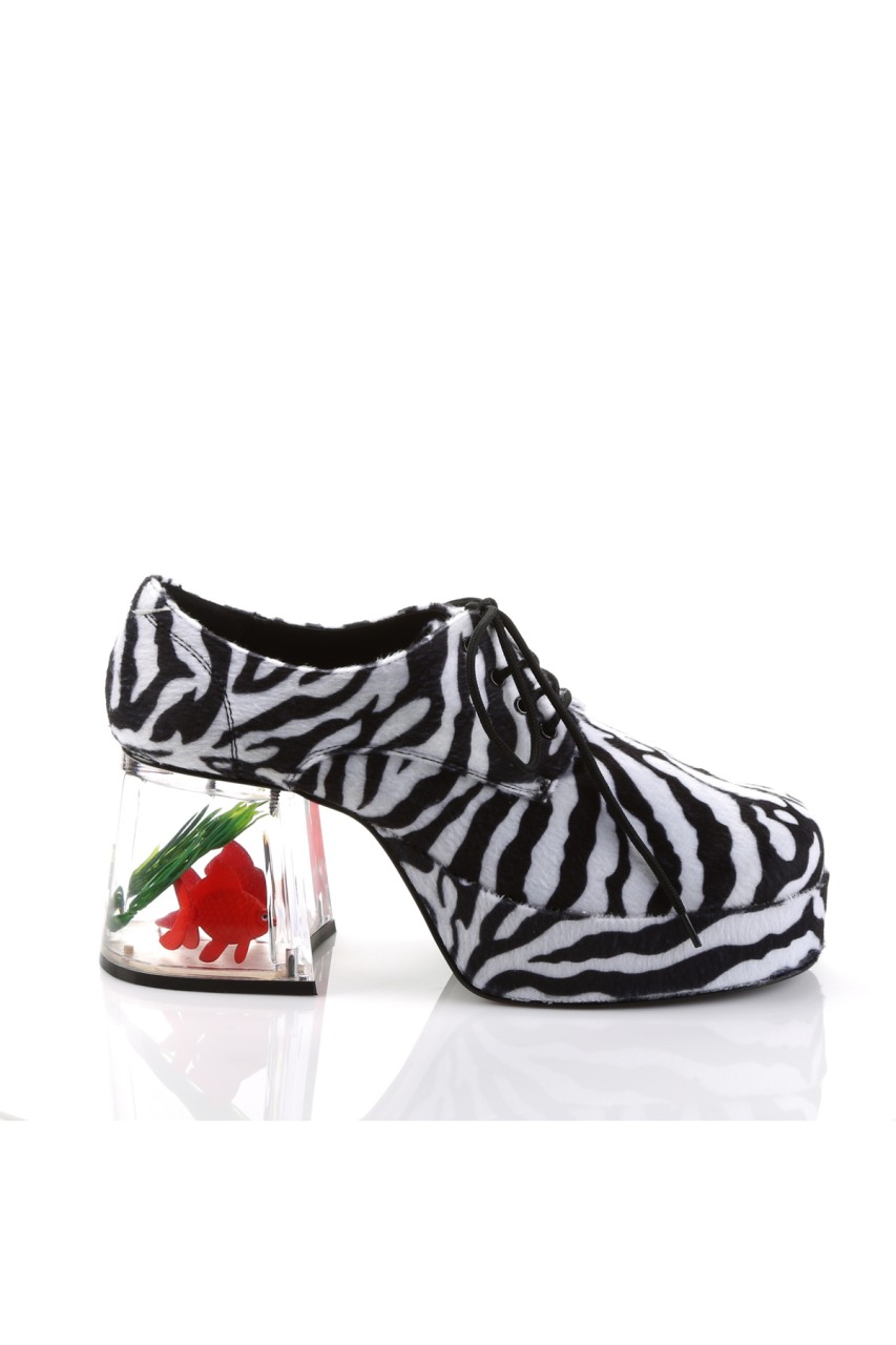 3.5″” (8.9cm) Platform, 1 1/2″” (3.8cm) Platform Men’s Disco Shoes Featuring Floating Fish Inner Side Heel