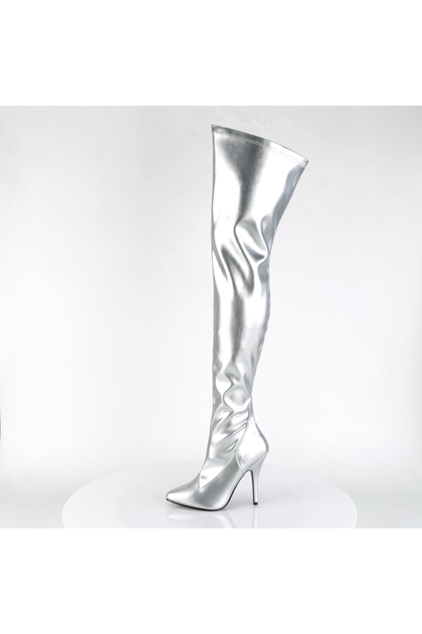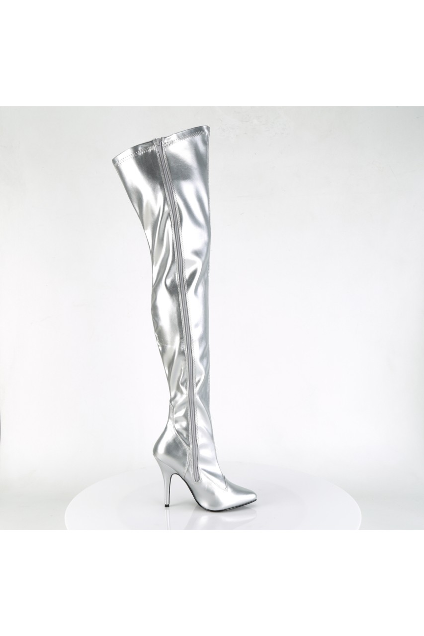 5″” (12.7cm) Heel Plain Stretch Thigh Boot, Full Inner Side Zip Closure