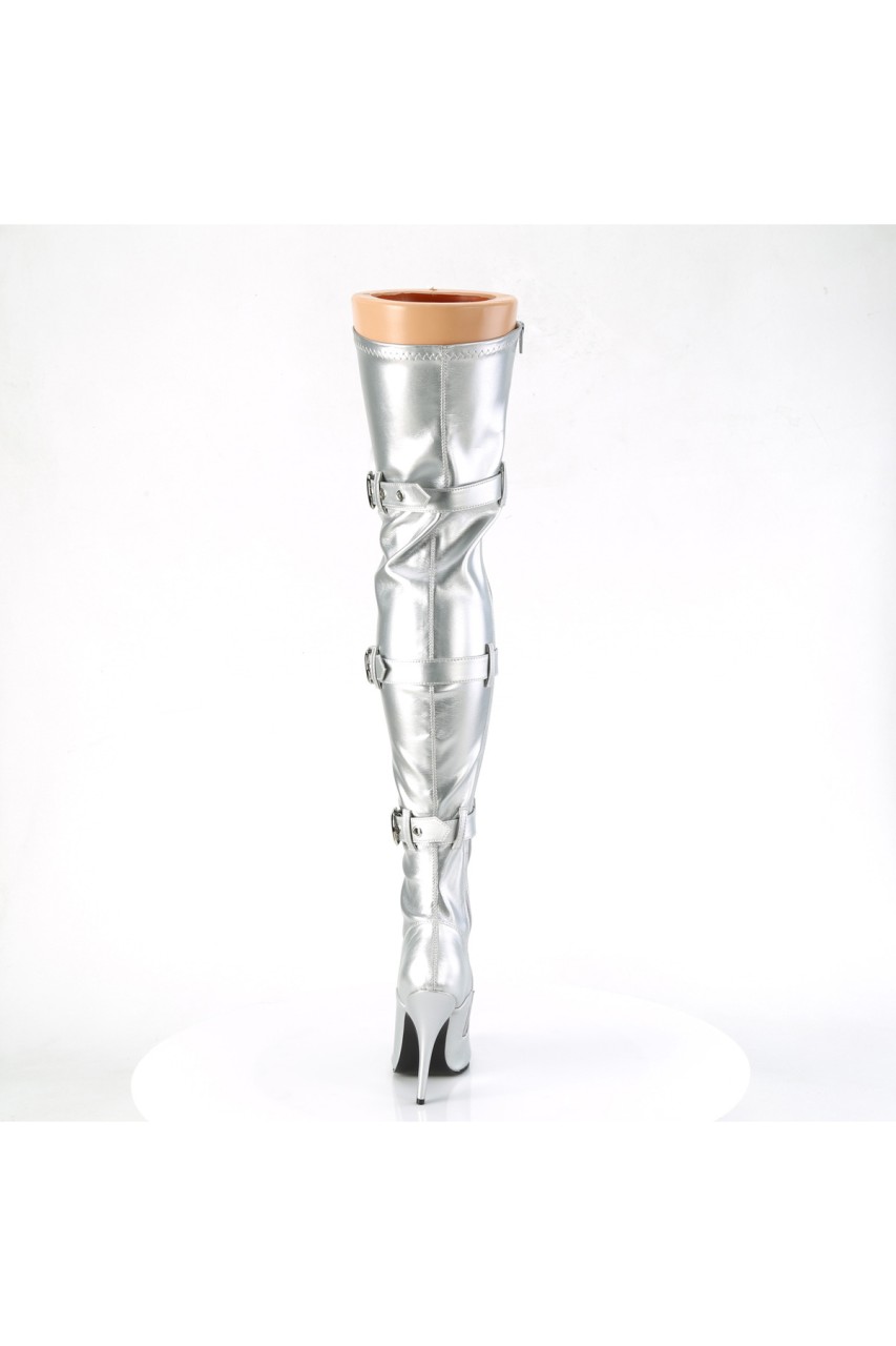 5″” (127mm) Stiletto Heel Ribbon Lace-Up Front Triple Buckle Strap Stretch Thigh High Boot, Full Inner Side Zip Closure