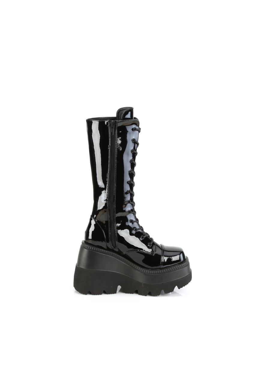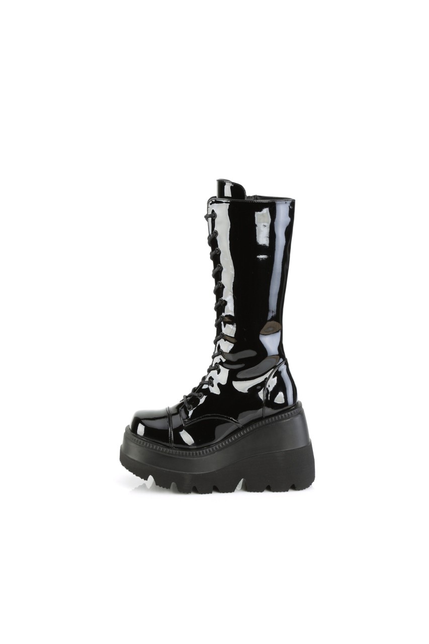 4 1/2″” (114mm) Wedge Platform Lace-Up Front Mid-Calf Boot, Full-Length Inner Side Zip Closure
