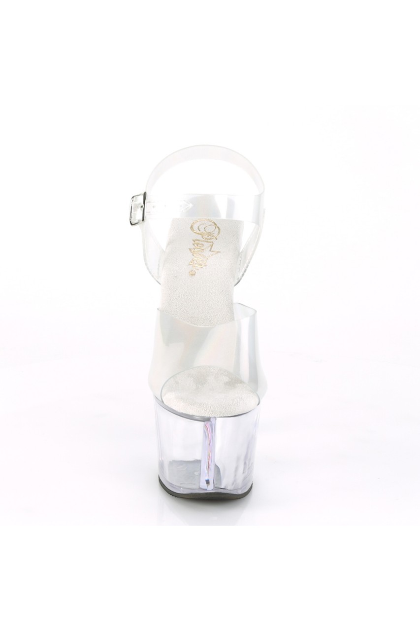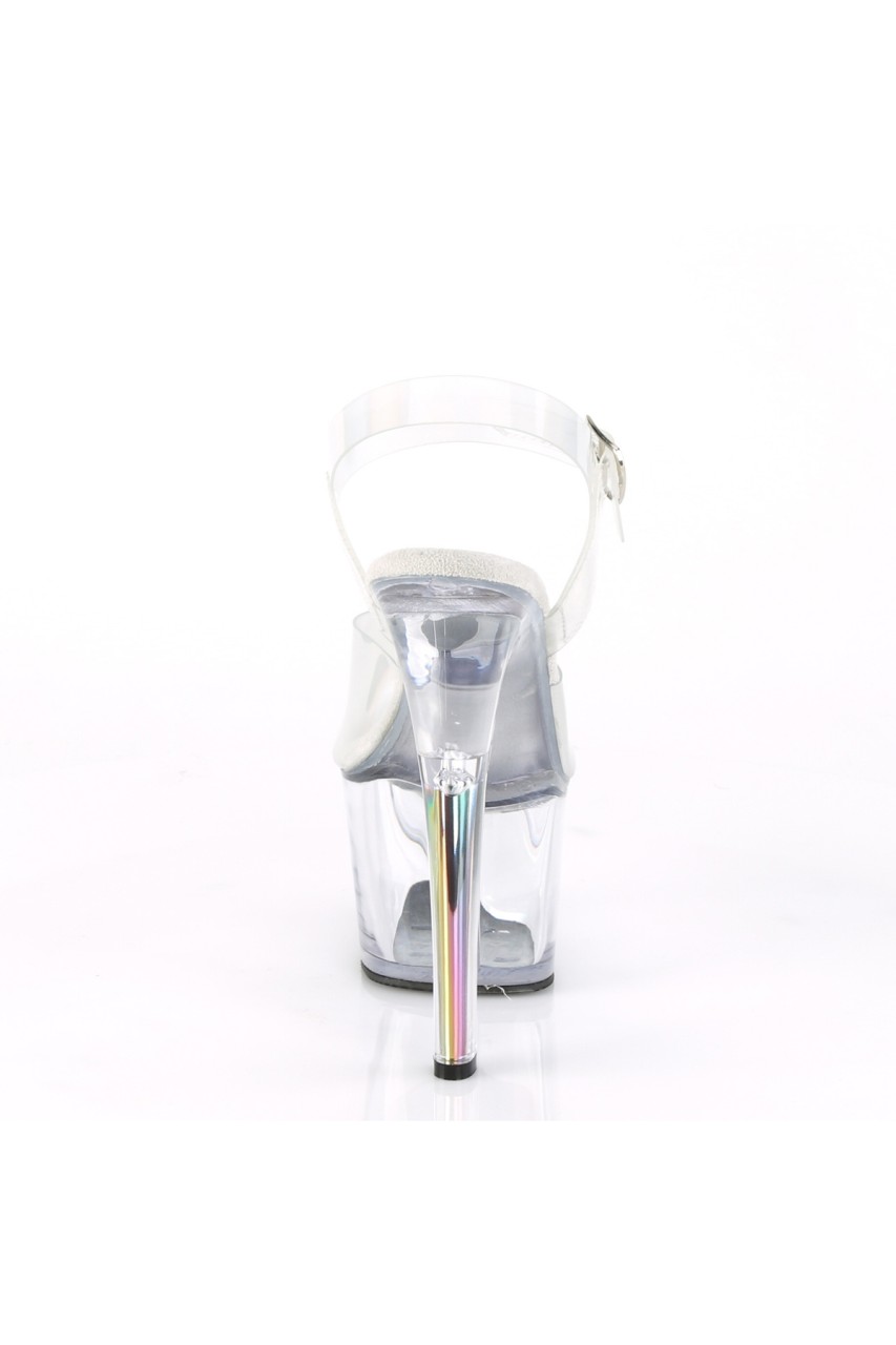 7″” (178mm) Heel, 2 3/4″” (70mm) Platform Ankle Strap Sandal Featuring Holographic TPU Upper