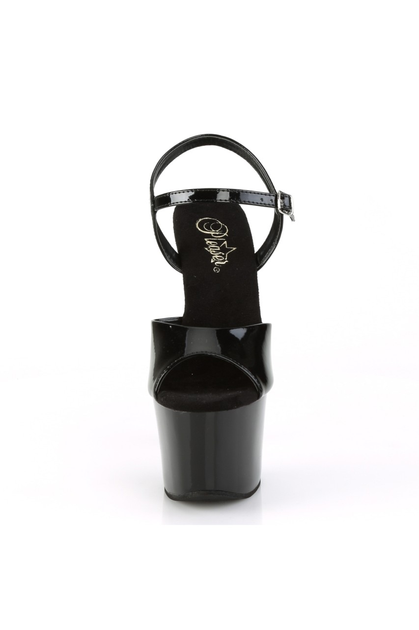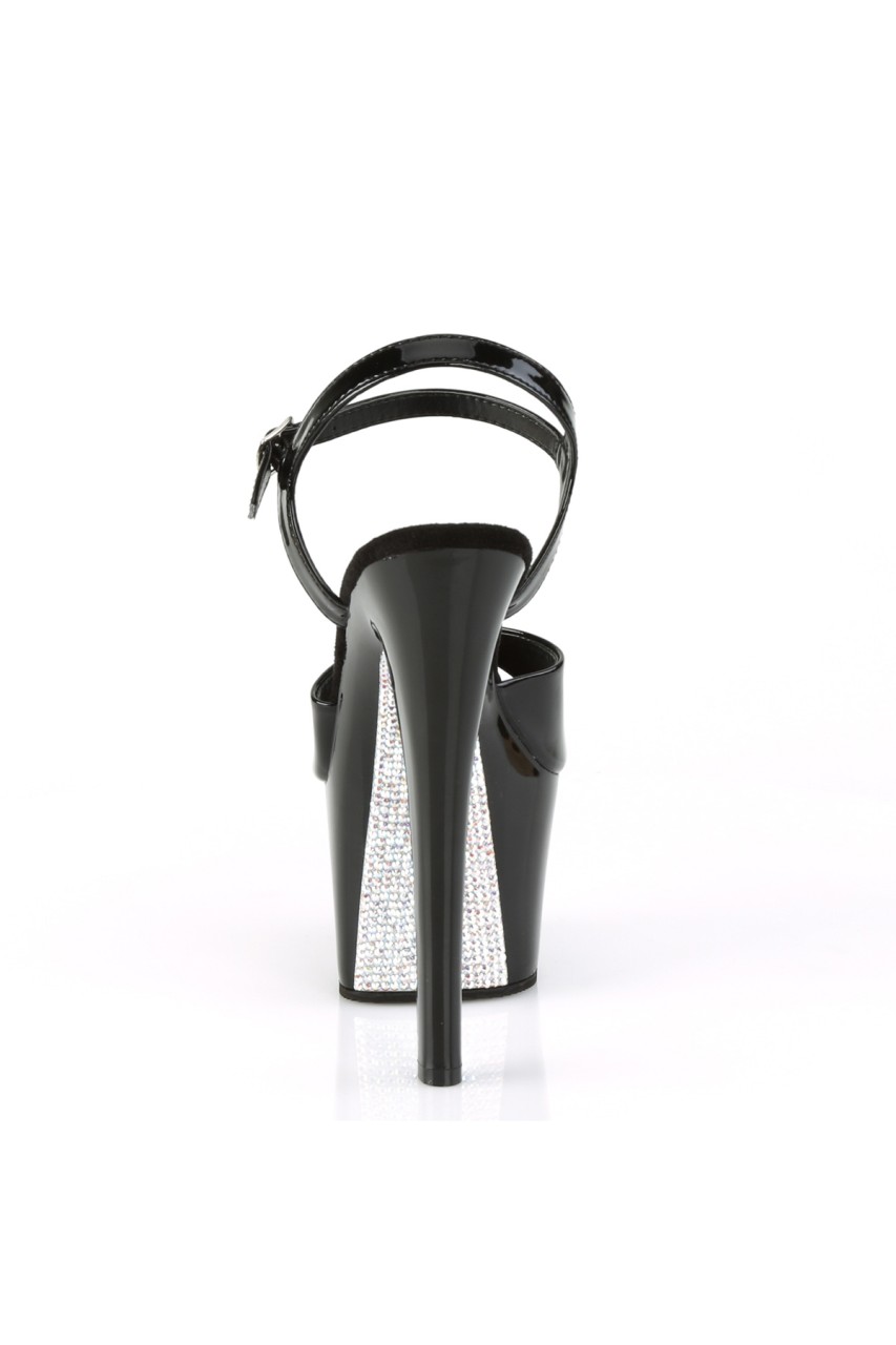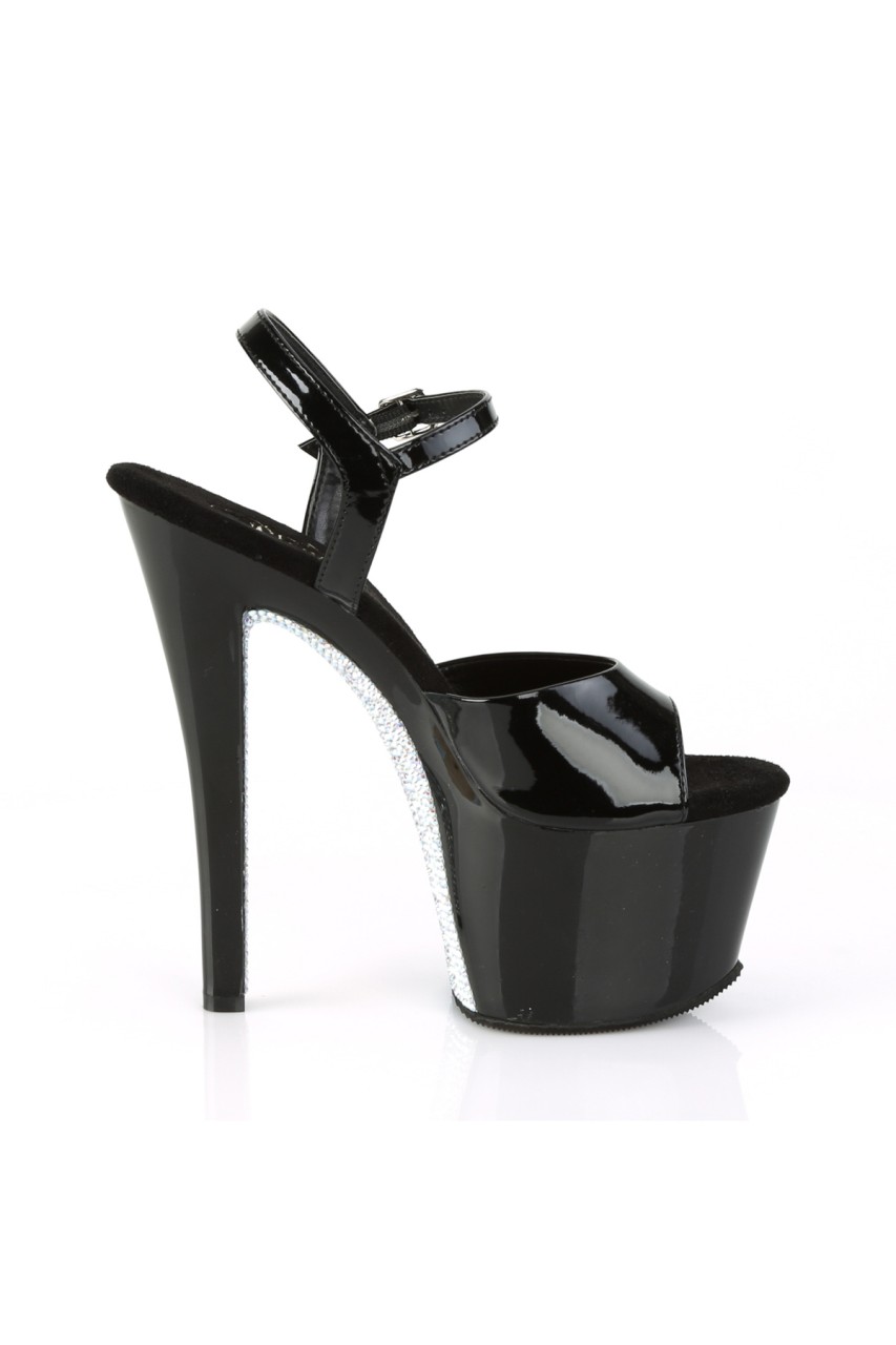 7″” (178mm) Heel, 2 3/4″” (70mm) Platform Ankle Strap Sandal w/ Contrast Rhinestones on the Platform Bottom
