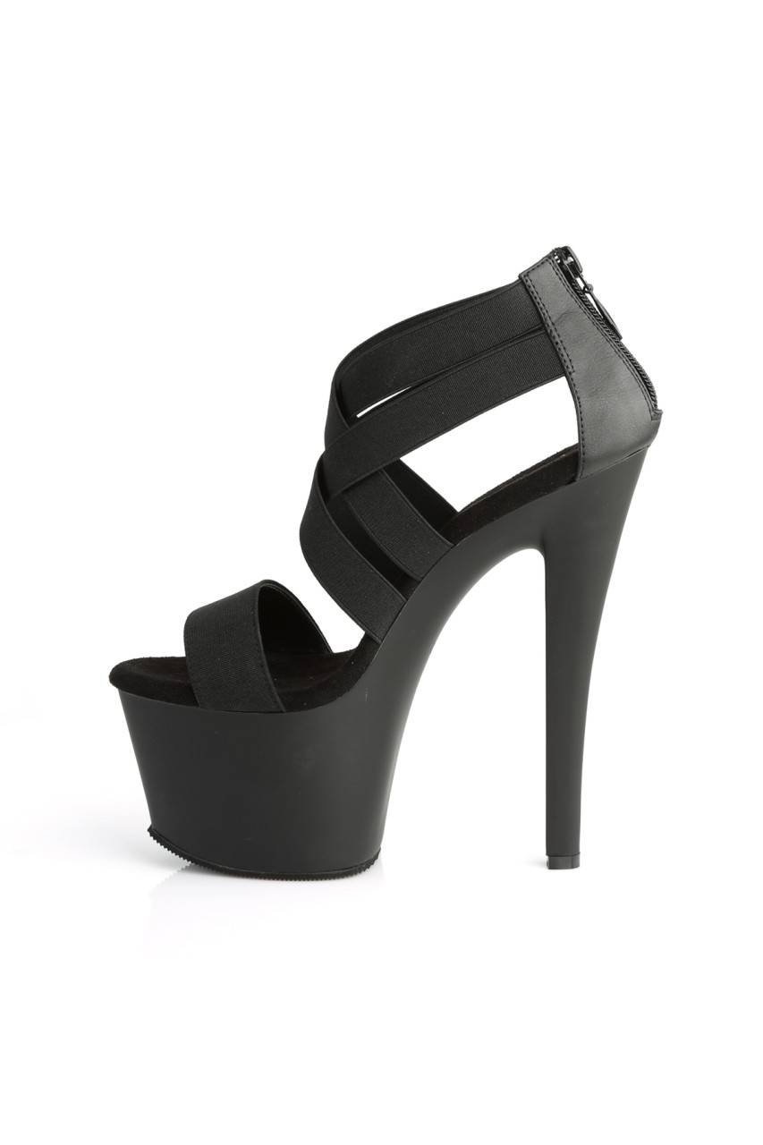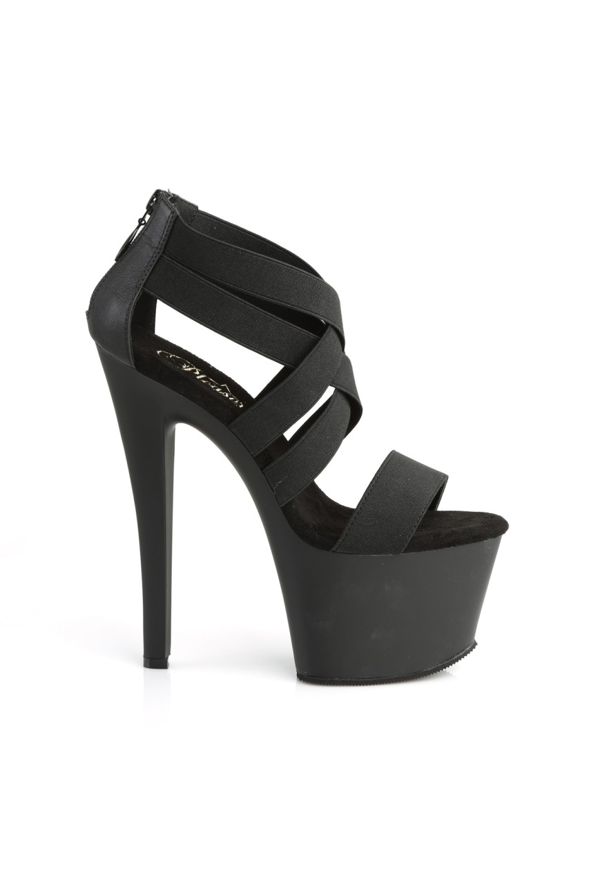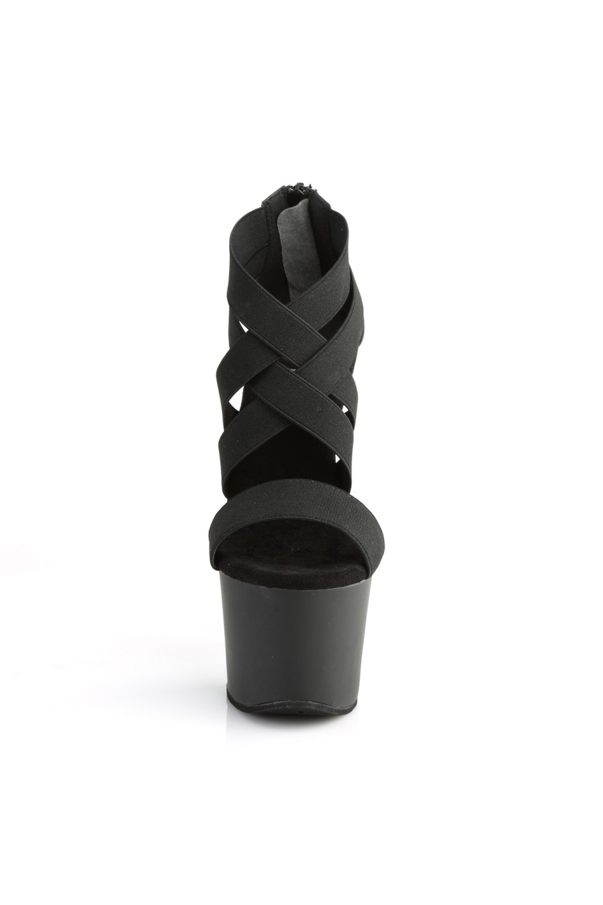 7″” (178mm) Heel, 2 3/4″” (70mm) Platform Double Criss Cross Close Back Sandal, Back Zip Closure
