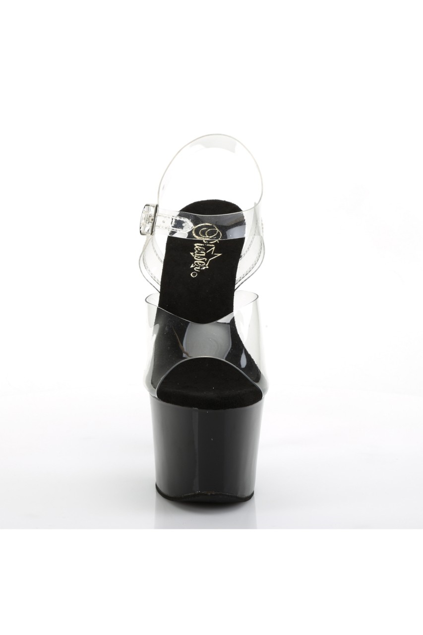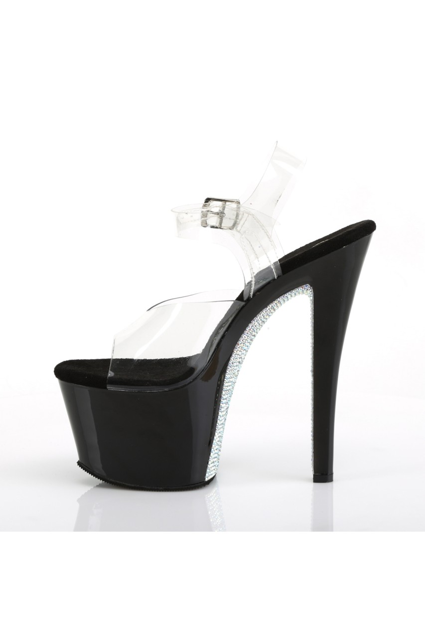 7″” (178mm) Heel, 2 3/4″” (70mm) Platform Ankle Strap Sandal w/ Contrast Rhinestones on the Platform Bottom