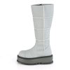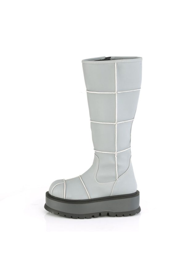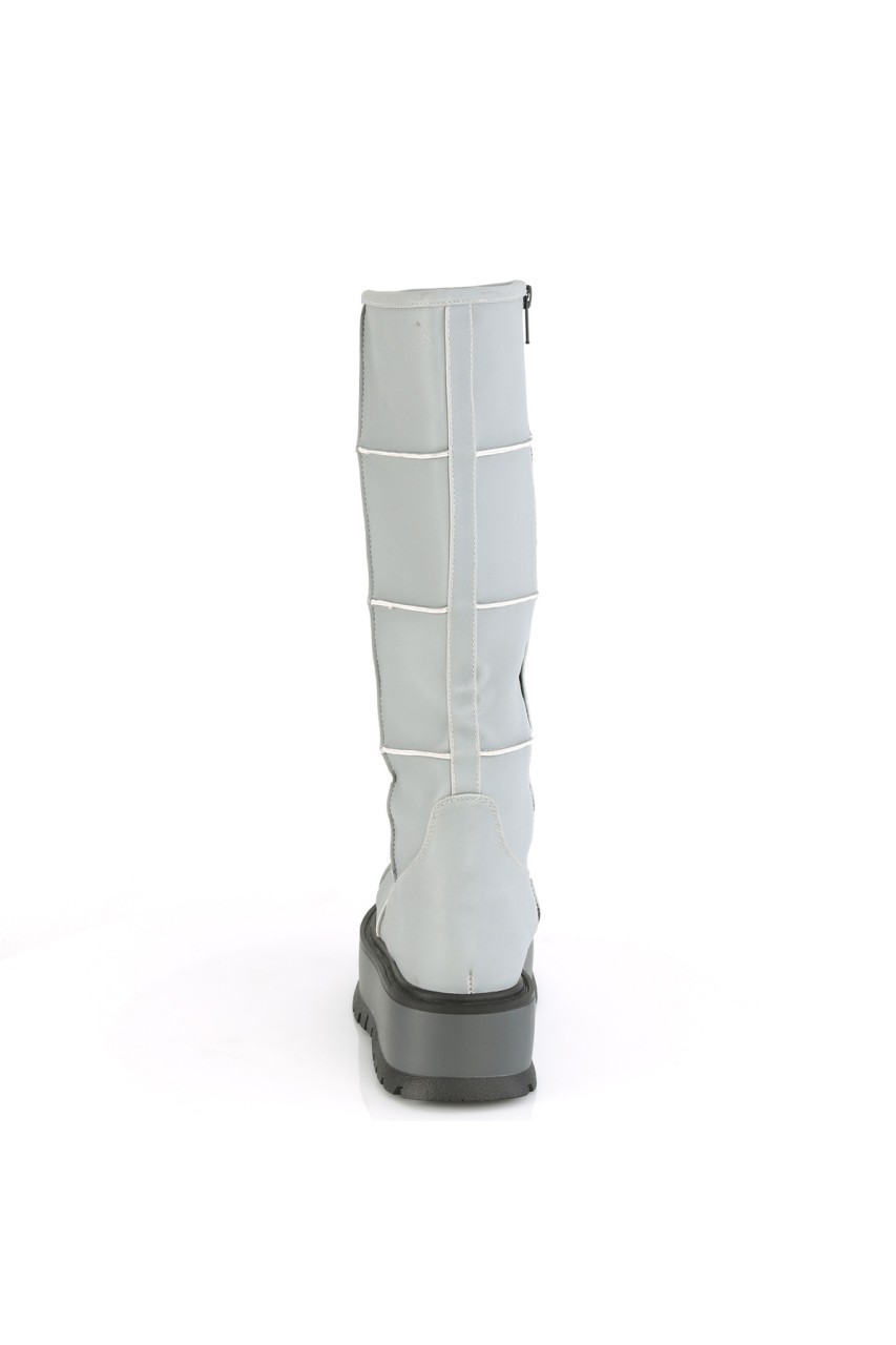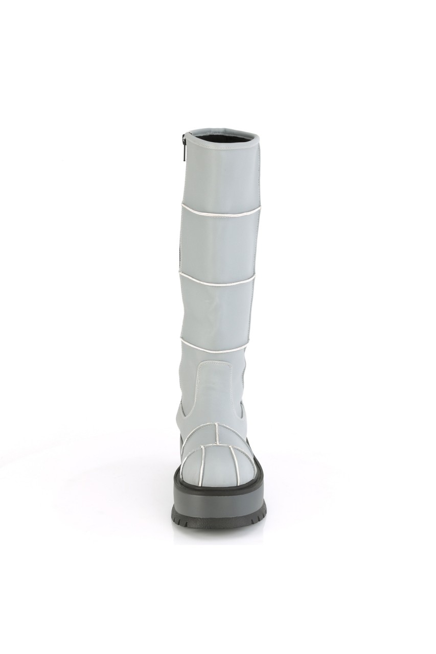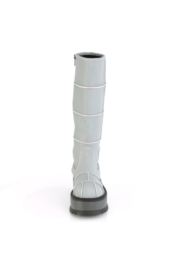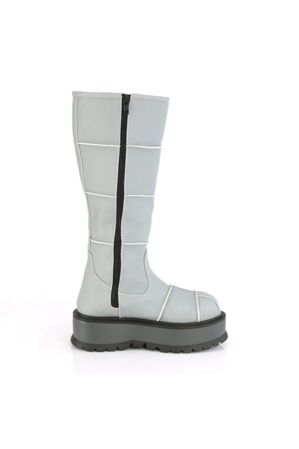 2″” (51mm) Platform Knee High Boot w/ Patching Details, Full Length Inner Side Metal Zip Closure