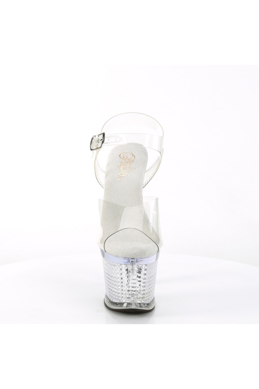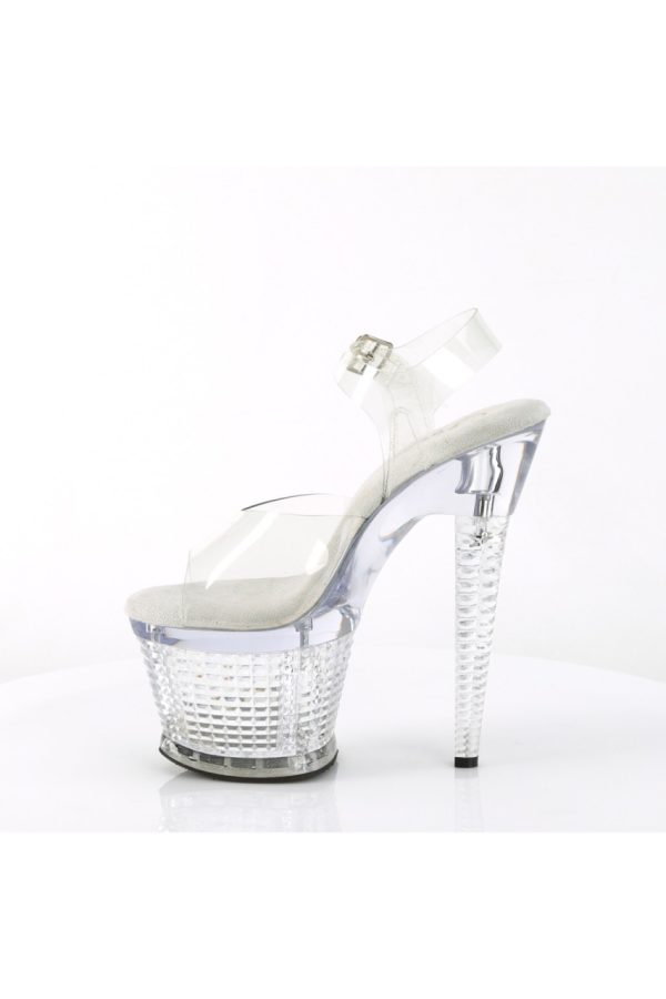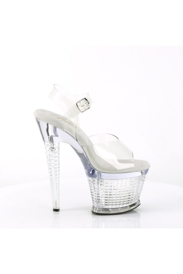 7″” (178mm) Heel, 3″” (76mm) Textured Platform Ankle Strap Sandal