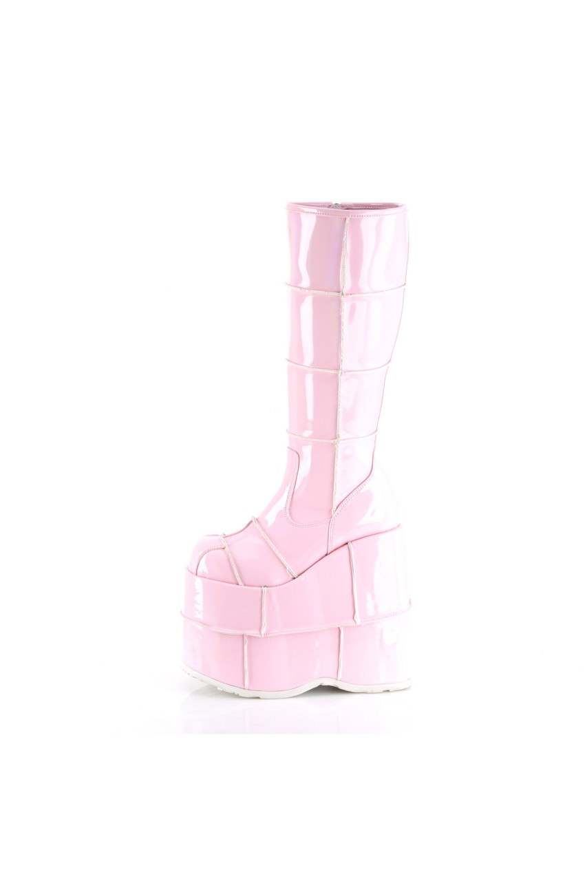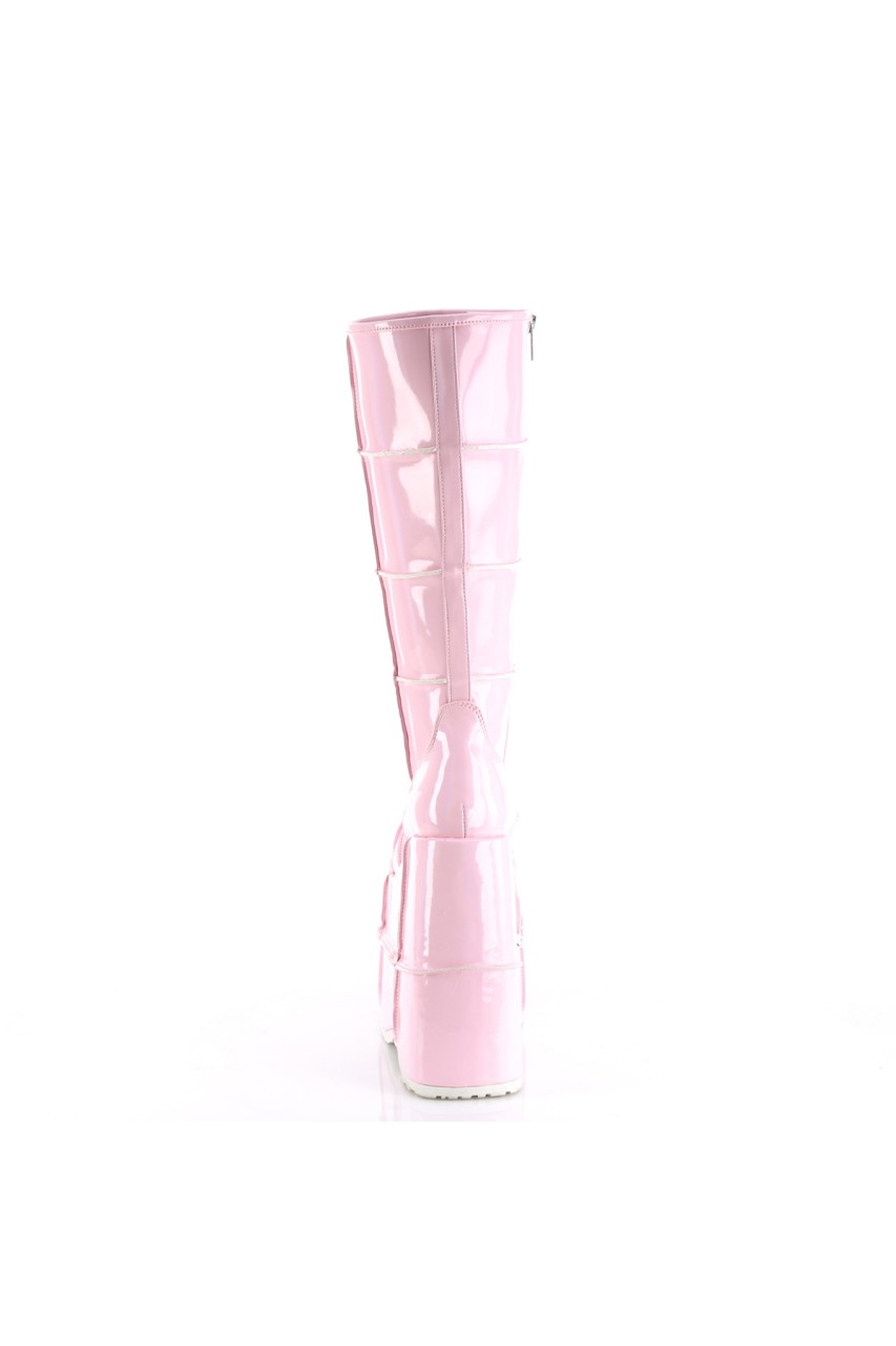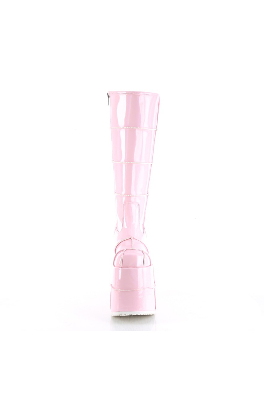 7″” (178mm) Platform Knee High Boot w/ Patching Details on Platform and Vamp, Inner Side Metal Zip Closure
