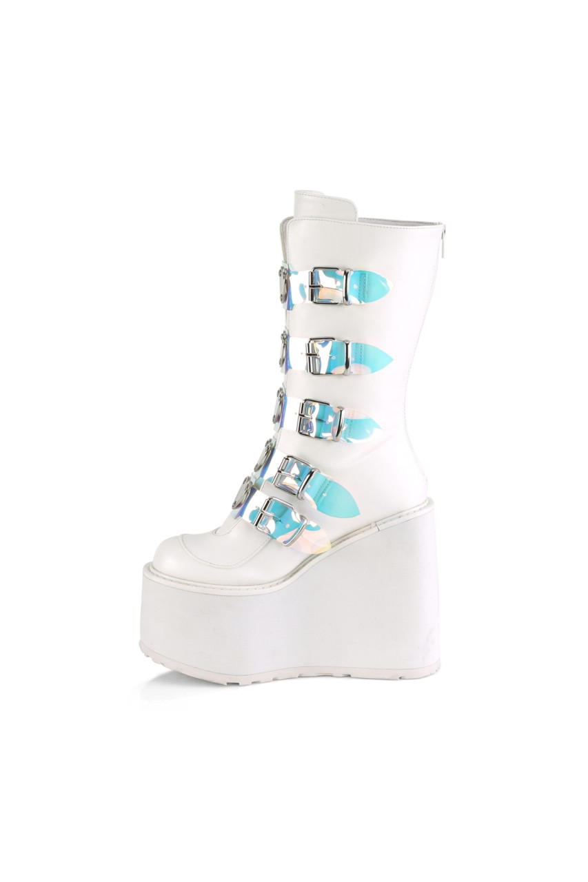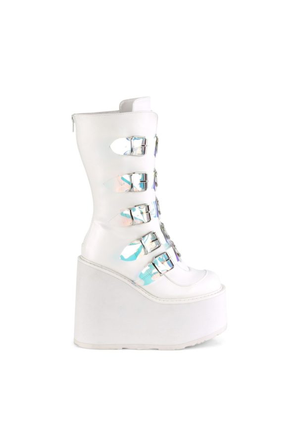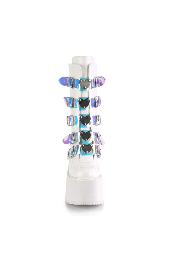 5 1/2″” (140mm) Platform Mid-Calf Boot Featuring 5 Buckle Straps w/ Heart Shaped Metal Plates at Center, Back Metal Zip Closure
