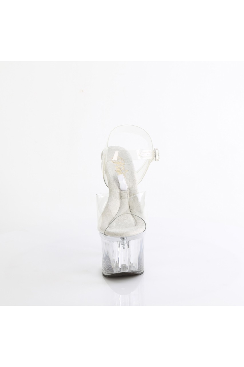 7″” (178mm) Heel, 3 1/4″” (83mm) Platform Ankle Strap Sandal Featuring Base Compartment Accessible from the Insole